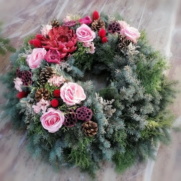 Vytváříme pestrou nabídku interiérových i exteriérových dekorací (adventní věnce, vánoční přízdoba hrnkových rostlin, závěsné dekorace, girlandy, dekorace a svícny na vánoční stůl).